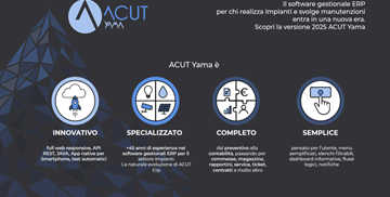 ACUT Yama è il nuovo gestionale ERP per impiantisti full web, totalmente ripensato e riscritto per essere allineato alle aziende del futuro.